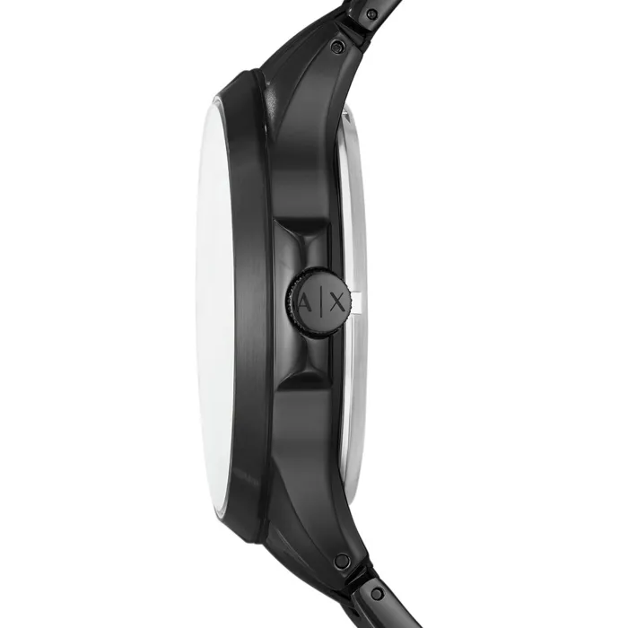 The HAMPTON AX2418, part of the Armani Exchage collection, is a black watch with Miyota 82S0 automatic movement. The watch has a stainless steel case and bracelet, and under the mineral glass you can see the 21-jewel movement with a 42-hour power reserve from the bullseye dial. The case is 46 mm wide and the bracelet attachment point is 22 mm wide. Armani watches are guaranteed for 2 years and come in the original manufacturer’s box.