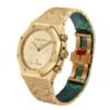 Two new Royal Oak models and two new Royal Oak Offshore models cut clean and minimalist silhouettes. The former, crafted entirely in 18ct yellow gold, encompasses both the distinctive streamlined silhouette of the Royal Oak and Williams’ penchant for technical and unexpected materials. A simple dial eschews the traditional hour markers and date window, the only adornment on the gold face an understated satin-finishing, while the self-winding chronograph also leaves out the chronograph counters.
