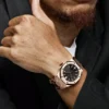 This exquisite timepiece is powered by a self-winding movement, ensuring accuracy and reliability. The intricate mechanics are visible through the transparent case back, showcasing the artistry of watchmaking.