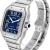 Featuring a sleek silver case paired with a captivating blue dial, this timepiece combines elegance with functionality. The square shape, iconic of the Santos line, is a timeless design that speaks to both tradition and modernity. With its automatic movement, the watch guarantees precision and reliability.