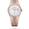 Despite its luxurious appearance, the watch is fitted with the Oysterflex bracelet.