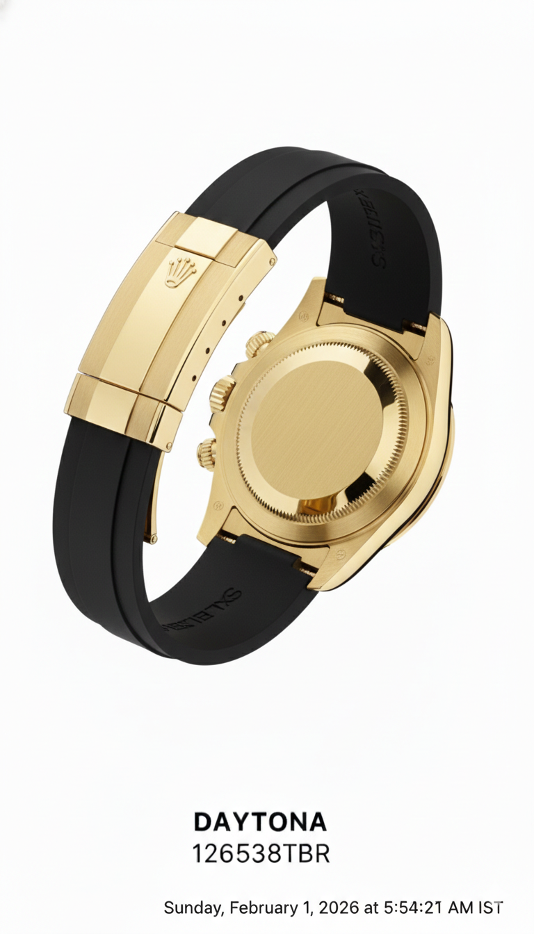 Comfort: It features “longitudinal cushions” on the inside that allow the skin to breathe, making it the most comfortable way to wear a heavy gold watch.